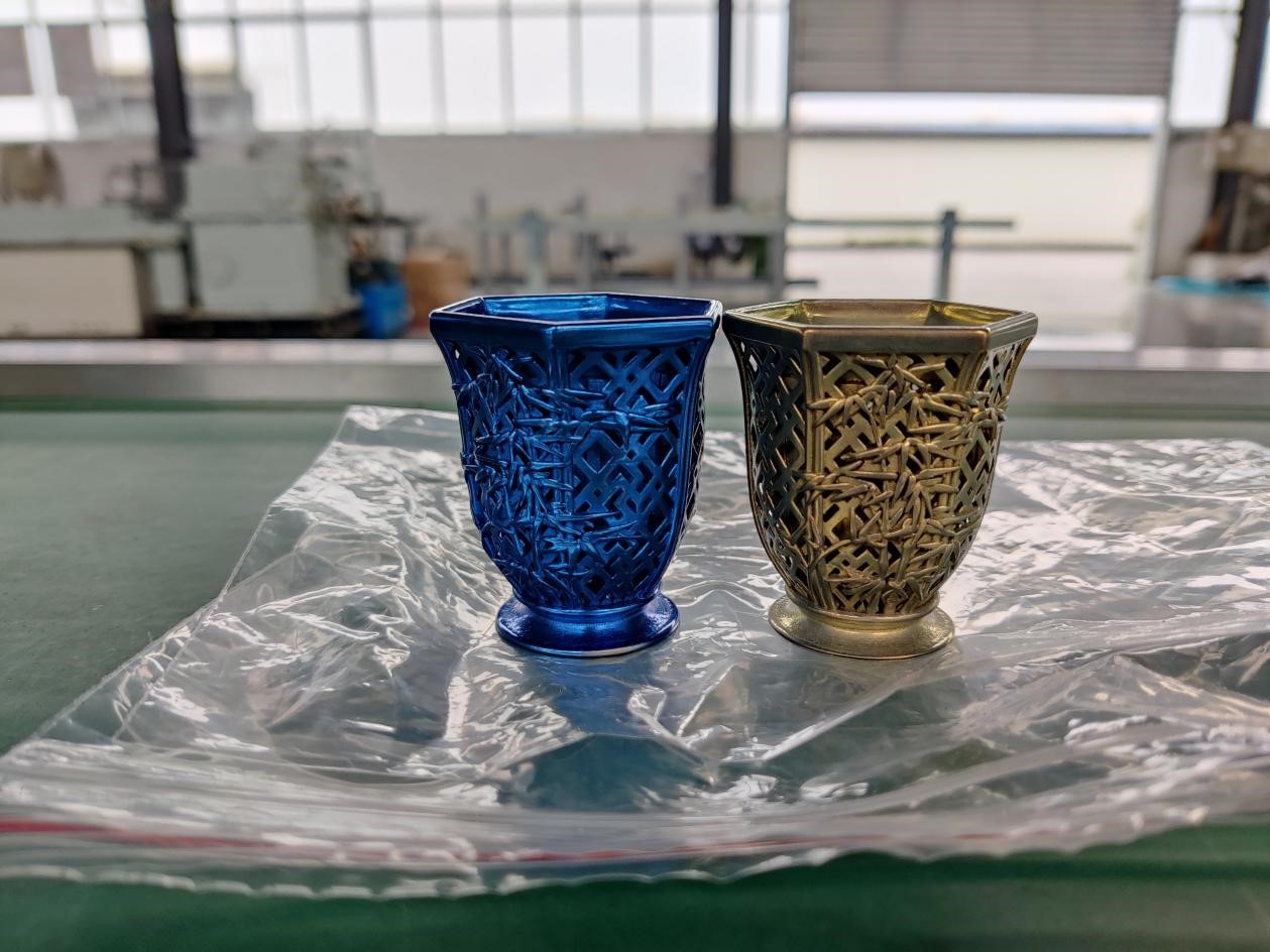 產(chǎn)品特征:以純鈦為材料進(jìn)行鏤空夾層設(shè)計(jì),在突顯美觀的同時(shí)體現(xiàn)了增材制造的技術(shù)優(yōu)勢,健康、隔熱、保溫、輕盈是它的特點(diǎn),再賦予鈦金屬特有的表面著色工藝使它更具魅力。